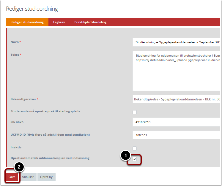 - Sæt flueben i feltet "Opret automatisk uddannelseplan ved indlæsning".